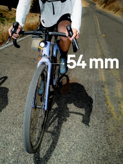 All Grizls get 54 mm tyre clearance—perfect for the fattest gravel rubber or mountain bike tyres up to 2.1” wide. Because big adventures sometimes need big tyres.