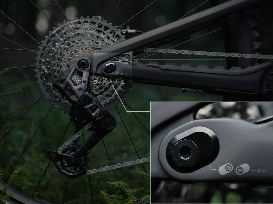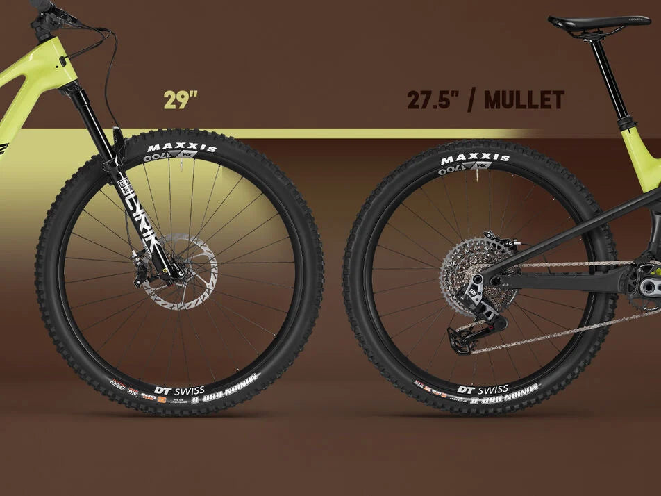 For sizes S - XL available in 29er and mullet setup. Size XS comes in a mullet setup.