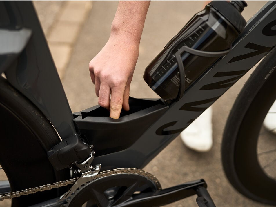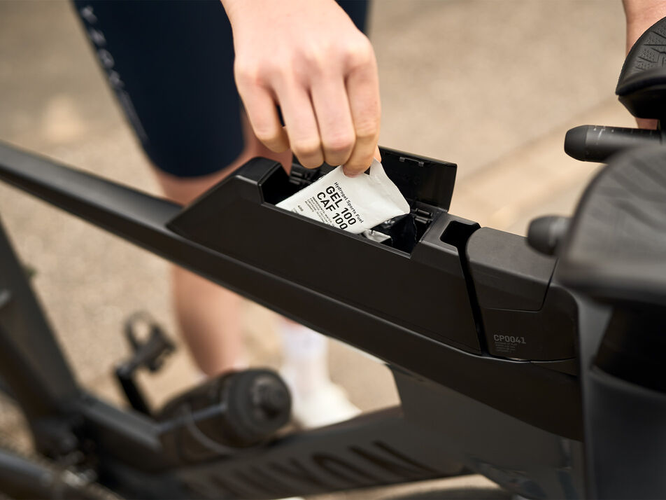 Access your tubes and larger tools in seconds. This high-grade nitrile rubber box is conveniently positioned above the bottom bracket and seamlessly integrates with the frame to minimise drag. It’s also simple to detach for shorter races.