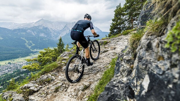There’s no point in leading on the climbs if they’re going to overtake you on the way down. The RockShox Reverb AXS dropper post and increased front travel chew up steep downhill sections. The long reach and short stem put you in full control.