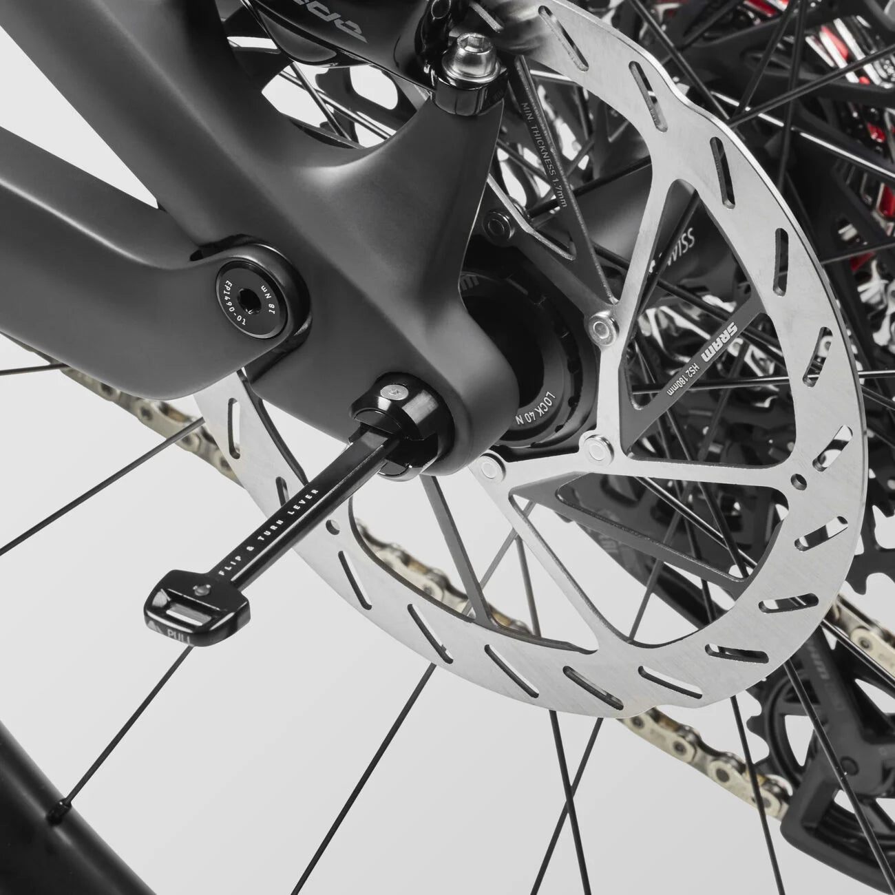 Experience the refined elegance of this bike’s premium stealth artwork, designed to showcase its advanced unidirectional carbon structure. By revealing the intricate carbon layup, we’ve reduced weight and created a distinctive, textured aesthetic.