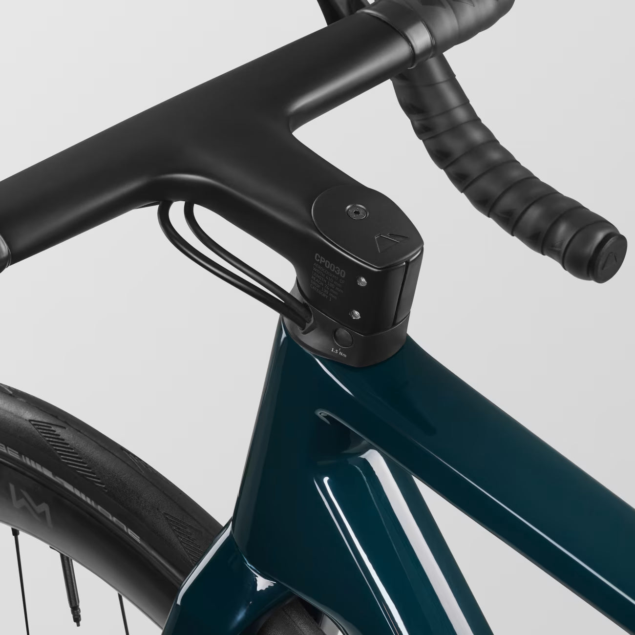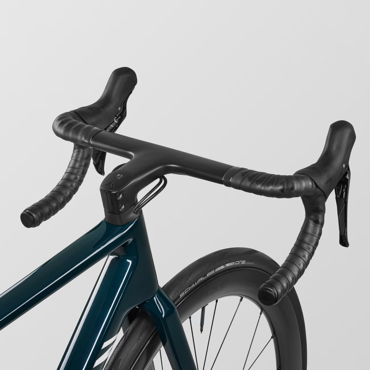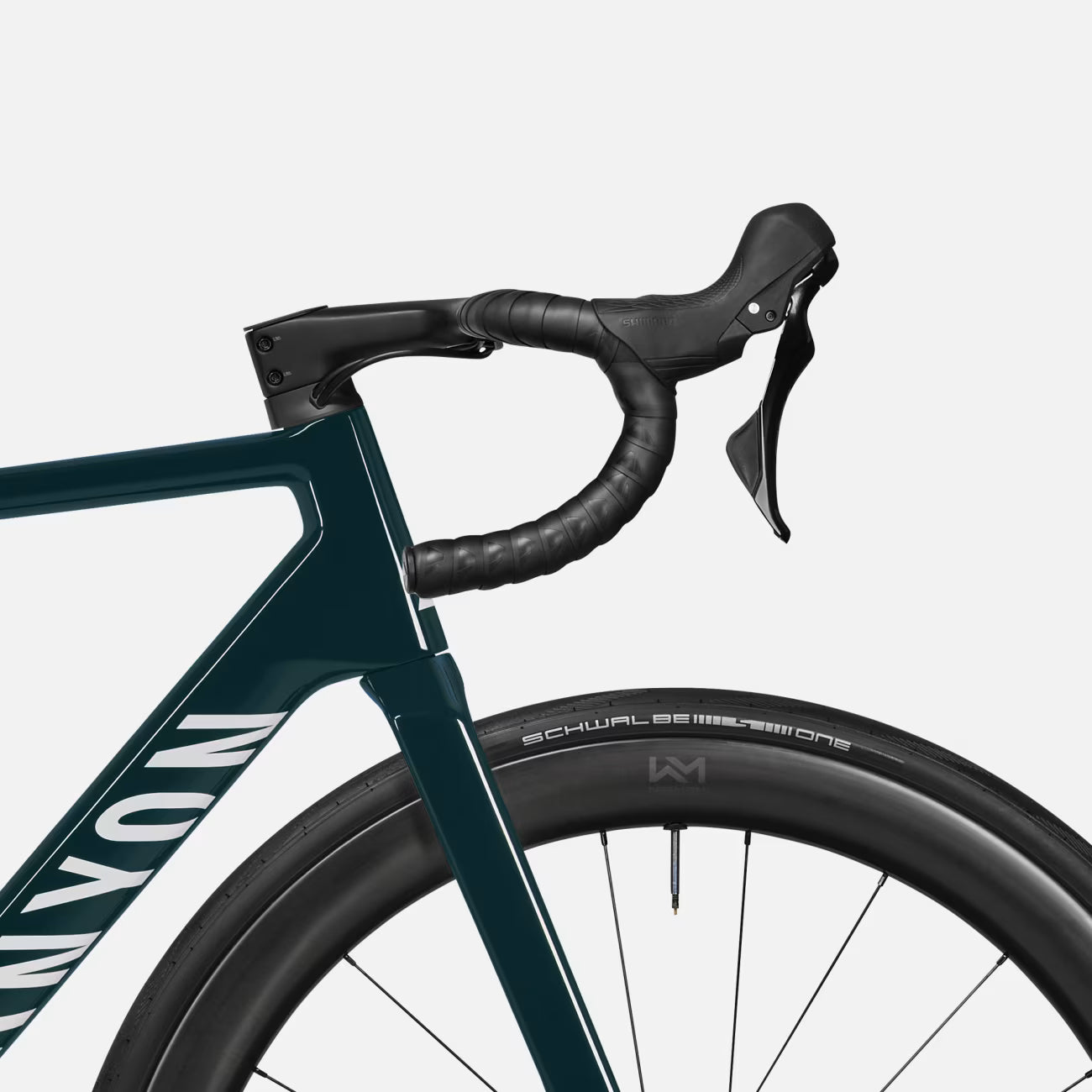 Developed in-house at Canyon, this lightweight, stiff aero one-piece carbon cockpit features a race-inspired design for optimal control and precision. A smooth, straight transition from the bartape edge to the top bar guarantees super-clean aesthetics. And ergonomic drops make room for a tight, locked in thumb position for extra comfort and grip.