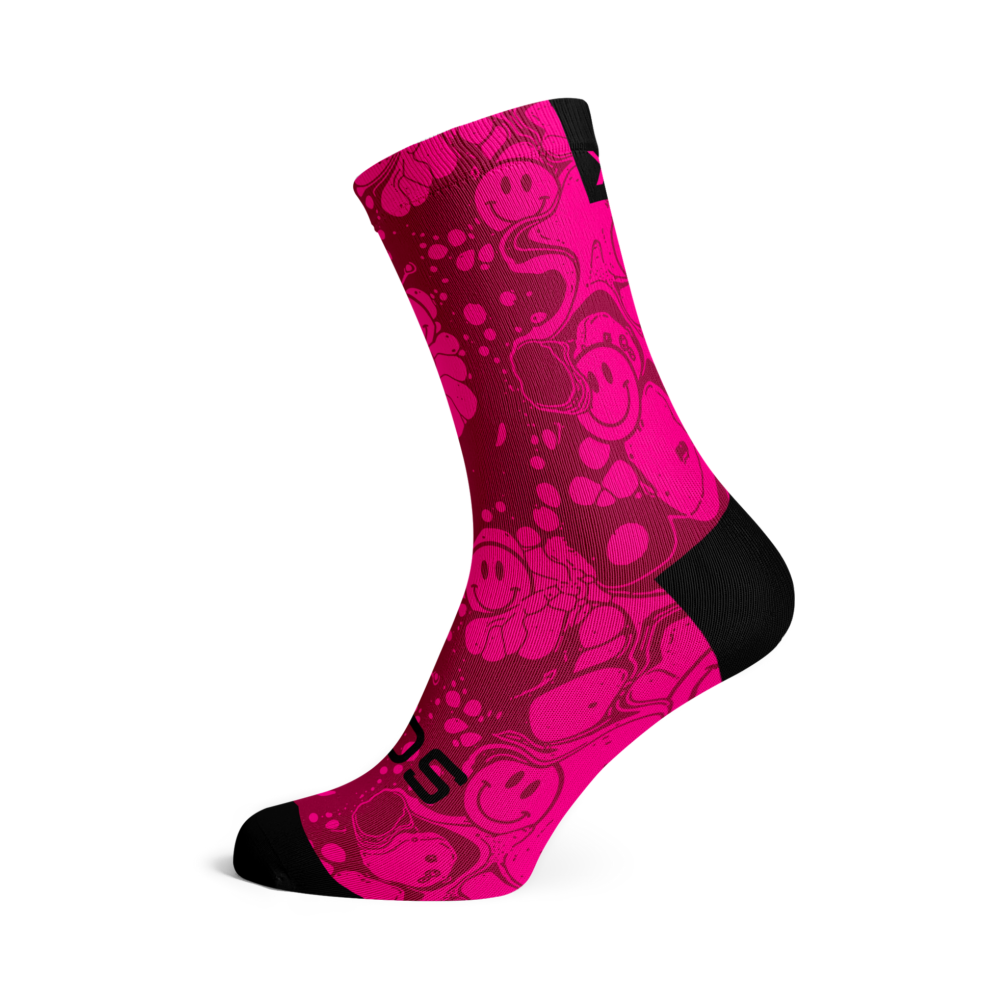 Neon Slide Pink brings the heat with hot pink energy, layered in swirls and cheeky smileys for a look that moves.