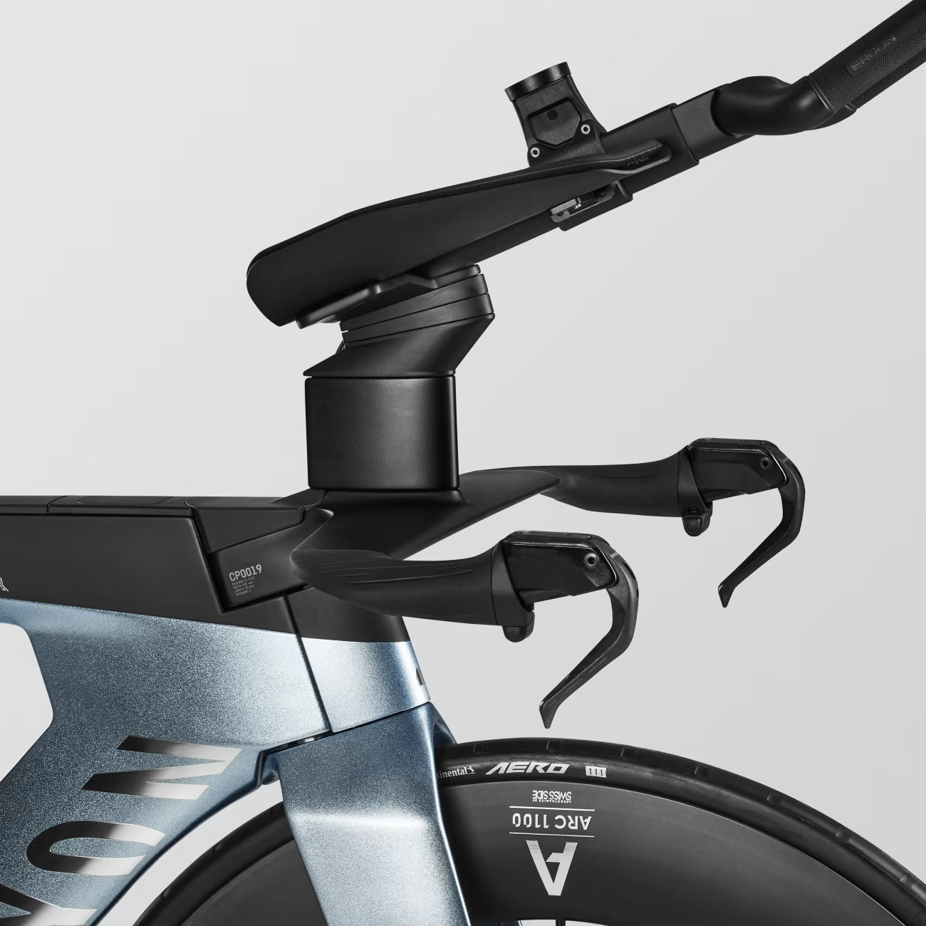 - New triathlon aero cockpit with egonomically optimised grips for maximum control at high speeds and a compact seating position.
